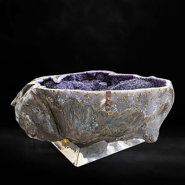This breathtaking geological wonder featuring a hollow rock cavity lined with sparkling and vibrant purple Natural Amethyst crystals. The artist encapsulates this stunning Amethyst’s pure beauty and elegance with a glossy, polished finish while embodying the natural beauty of the Amethyst itself with parts raw and untouched. Natural Amethyst geodes are highly prized for their stunning natural beauty and the spiritual significance attached to Amethyst, which is believed to promote inner peace, clarity, and protection. These captivating formations serve as both decorative and metaphysical pieces, infusing spaces with their enchanting and serene presence.
