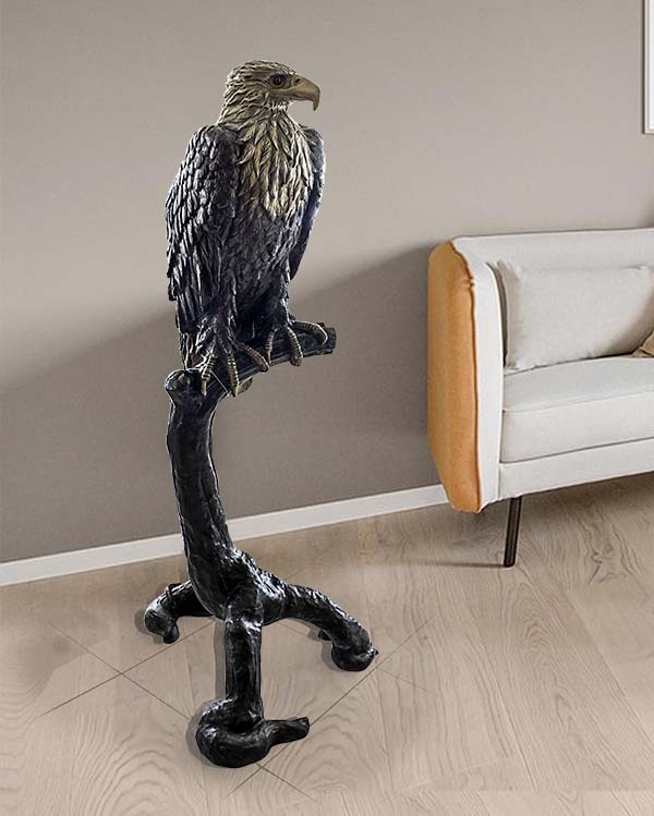 The eagle swooped down from the sky with its wings outstretched, its mouth open and its claws spread. As we all know, the eagle has a fierce temperament, a yellow beak, a curved upper beak, strong and powerful feet, sharp toes, and large wings capable of flying.  Add spirit to your home with this majestic eagle sculpture.