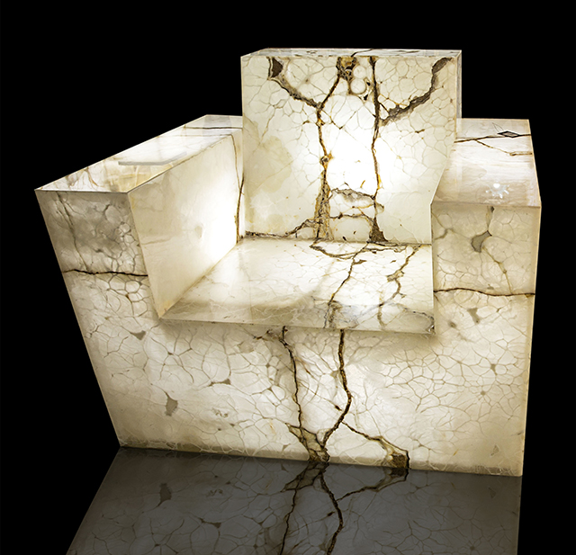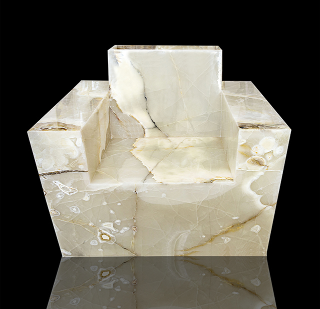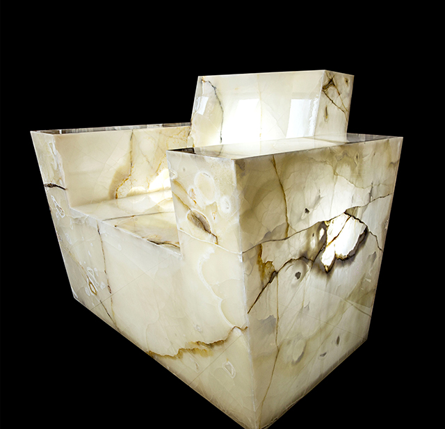 This stunning and artistic chair integrates natural translucent Onyx into its design. The chair is handcrafted from one piece of natural Onyx stone and has a backlit feature allowing light to pass through and cast a warm, ethereal glow. This unique feature accentuates the natural beauty and patterns of the Onyx. This chair serves as both a functional seating and decorative art piece, making it a captivating addition to various settings. Its combination of comfort and visual allure not only adds a touch of opulence but also infuses spaces with a sense of sophistication and artistic ambiance. This one-of-a-kind seating experience is perfect for those who appreciate unique and luxurious design.