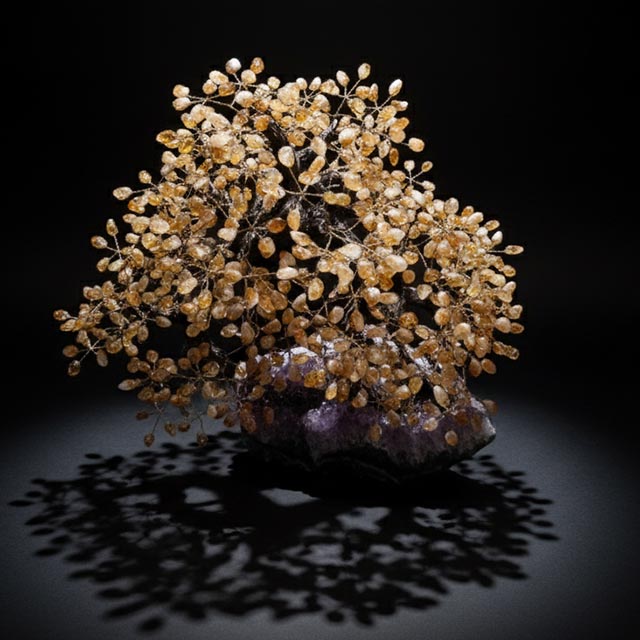 Citrine Gemstone Tree on Amethyst base, 720 Citrine beads