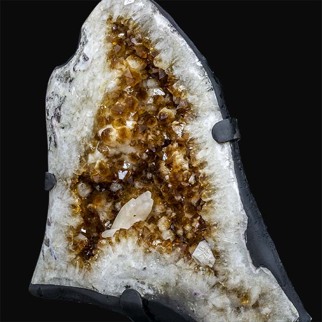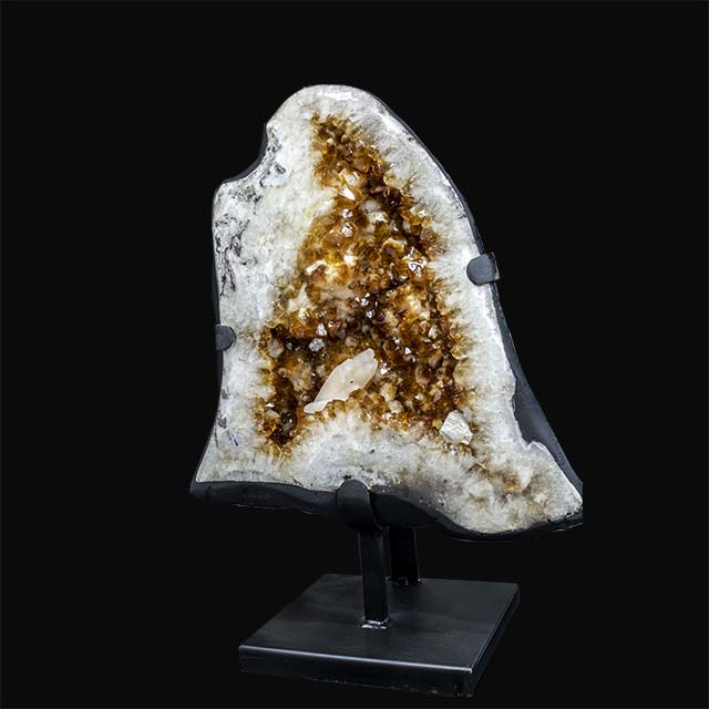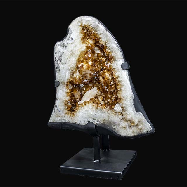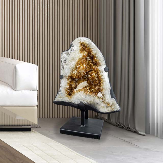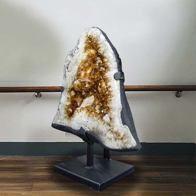 Citrine is said to promote optimism and positivity, which is not unexpected given its cheerful color. It is frequently utilized to help manifest financial prosperity and possibilities. This gorgeous Citrine geode has a vibrant orange and yellow hue that is lined with extra-large lustrous, transparent to translucent, and has highly reflective terminated faces. Perfect addition to compliment any space.