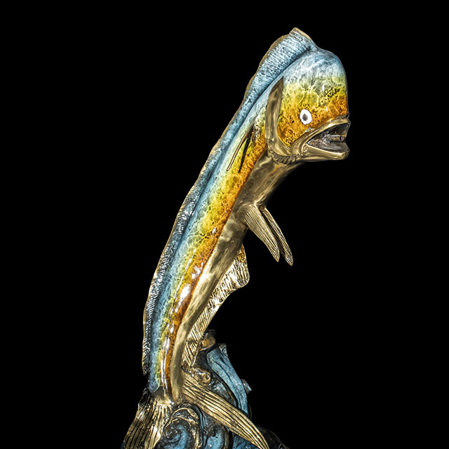 - Hand-Applied Patina: Features a rich, multi-toned patina (natural bronze, blue-green, and gold accents) that mimics the fish’s vibrant, natural coloring.
