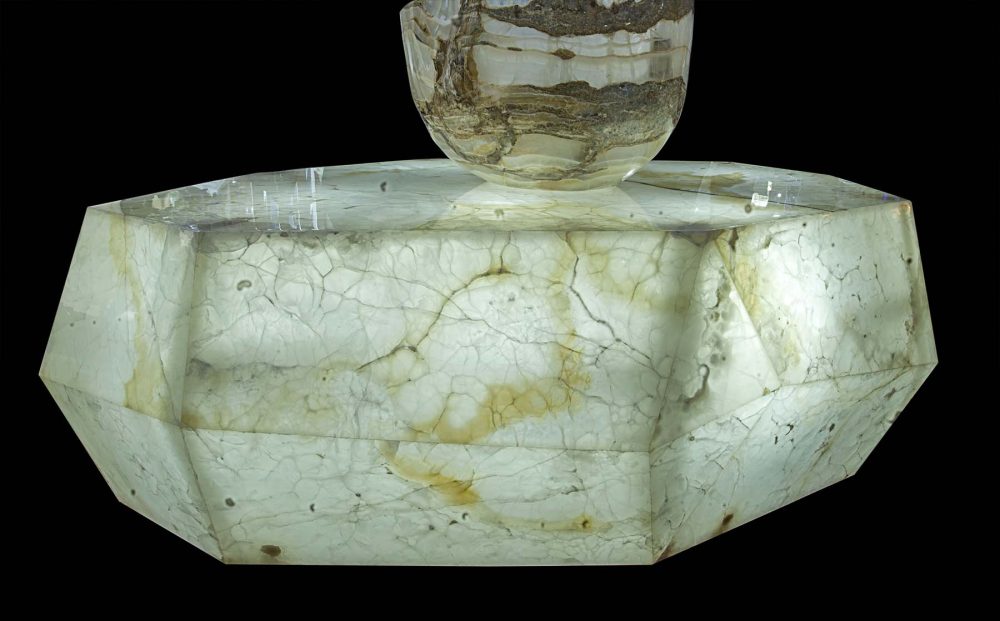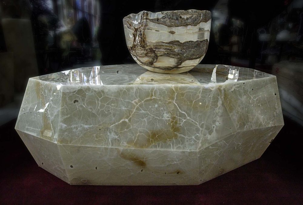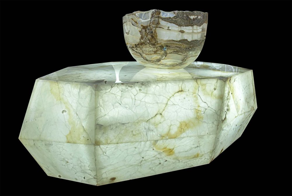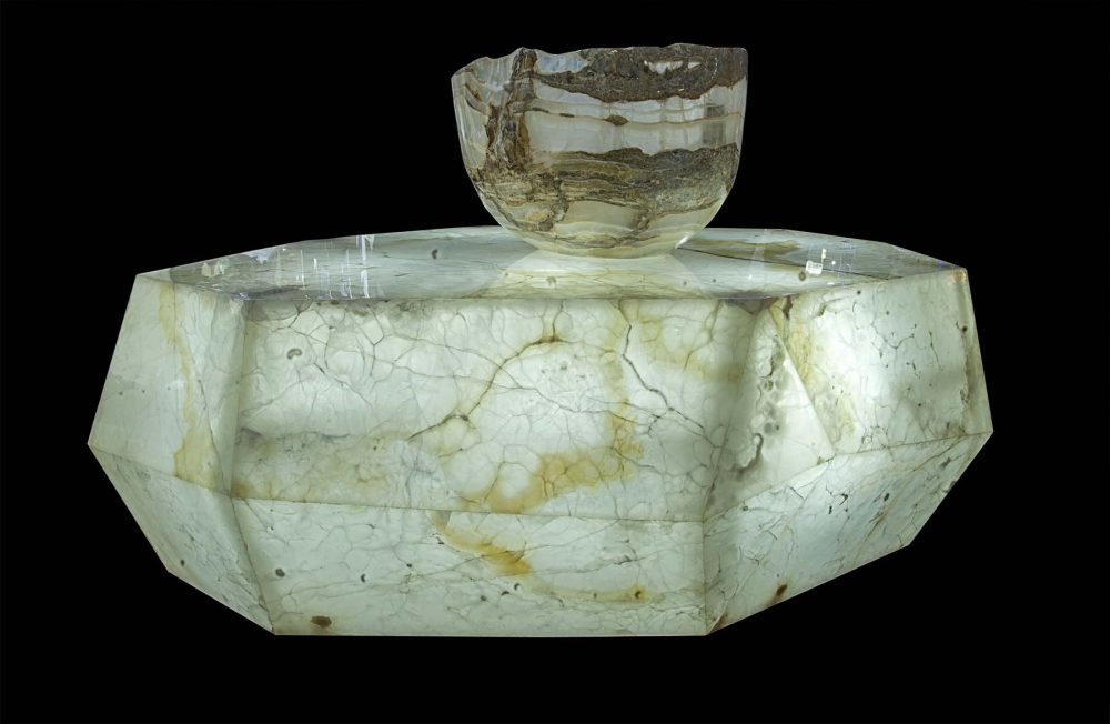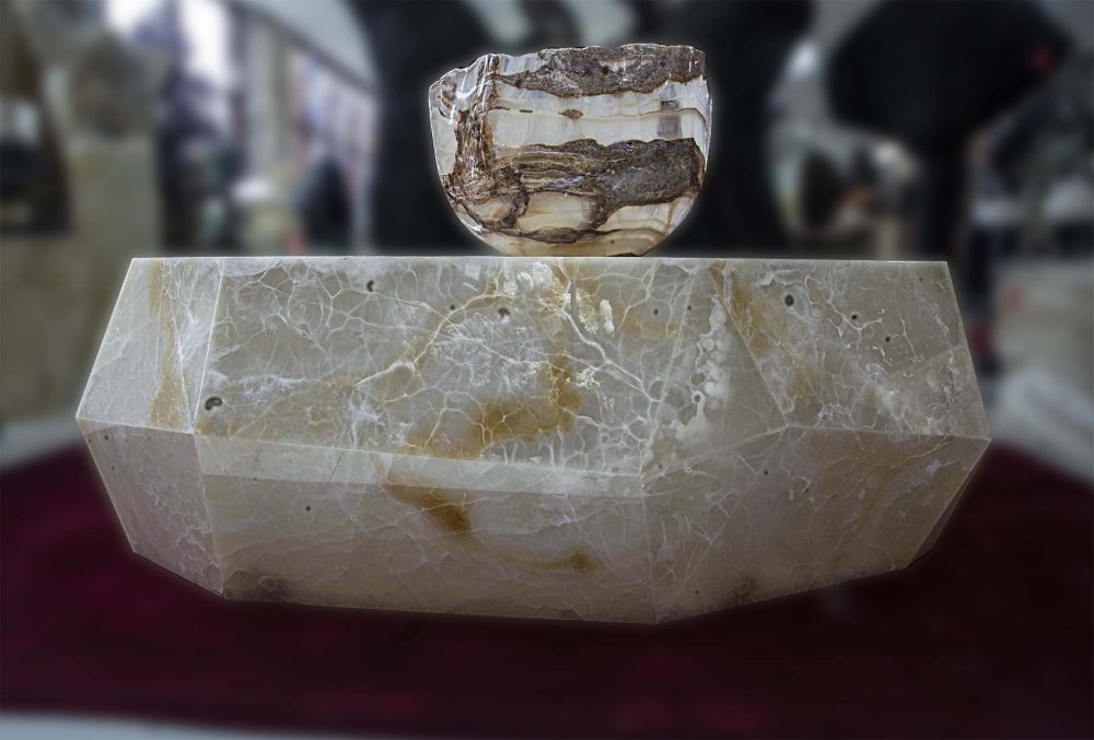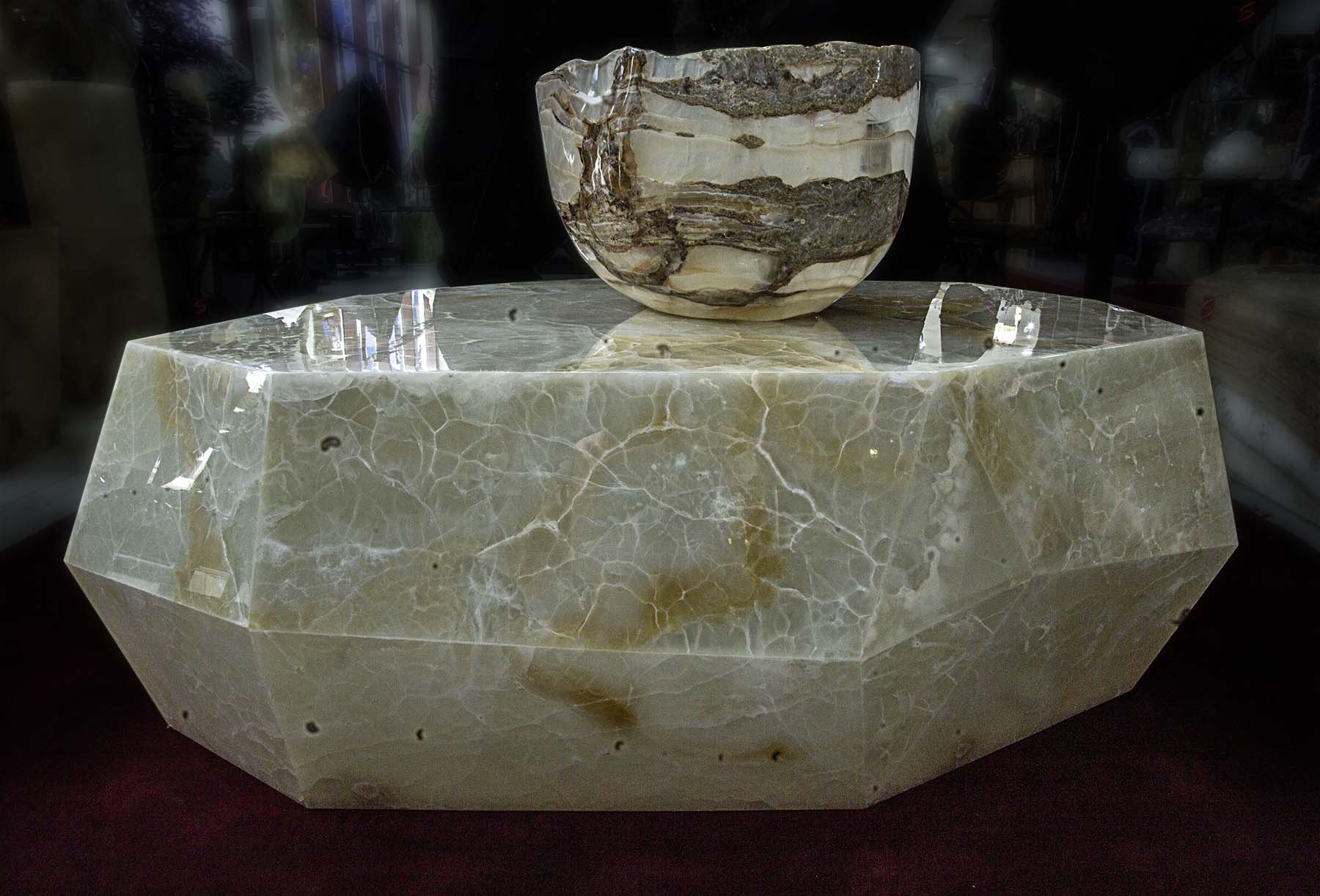 The Irregular Octagon shape adds a modern touch while the Natural Onyx and luxurious light that illuminate from within create a unique ambiance.