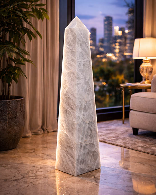 More than décor, Glacial Zenith is a sculptural monument formed by nature over millions of years. Its tall architectural silhouette symbolizes strength, clarity, and balance, making it a powerful visual anchor within refined spaces.