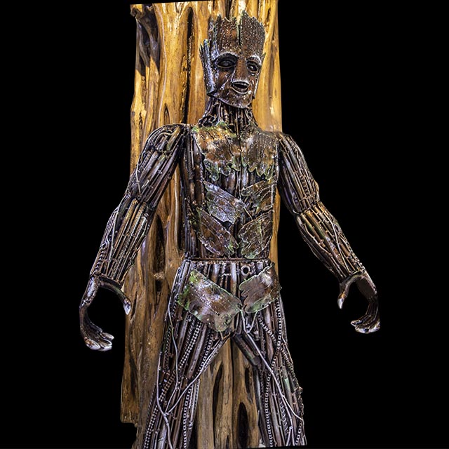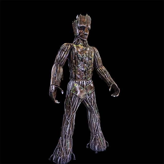 This Beautiful Metal Statue was Inspired by the Character GROOT from Guardians of the Galaxy, Handmade Turning Head Recycled Metal Art Statue. Made from Nuts, Bolts, Bits and Pieces.Hand-made work of art. This recycled metal artwork is perfect for your home, garden, hotel, restaurant  and can serve as an excellent & unique gift to your loved ones. As each piece is one-of-a-kind.