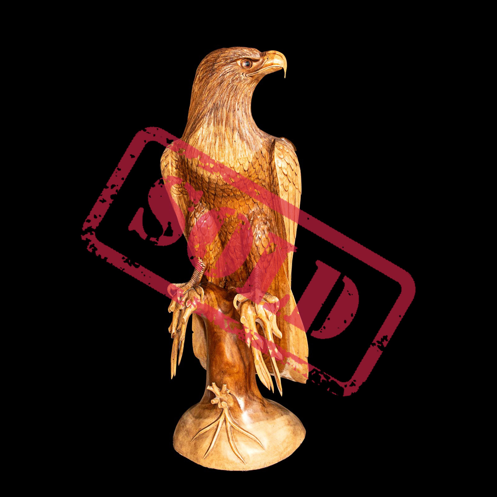 Hand-carved from just one piece of solid suar wood, this eagle also makes an unbelievable impression while it remains on a branch and seems to be observing the surroundings.