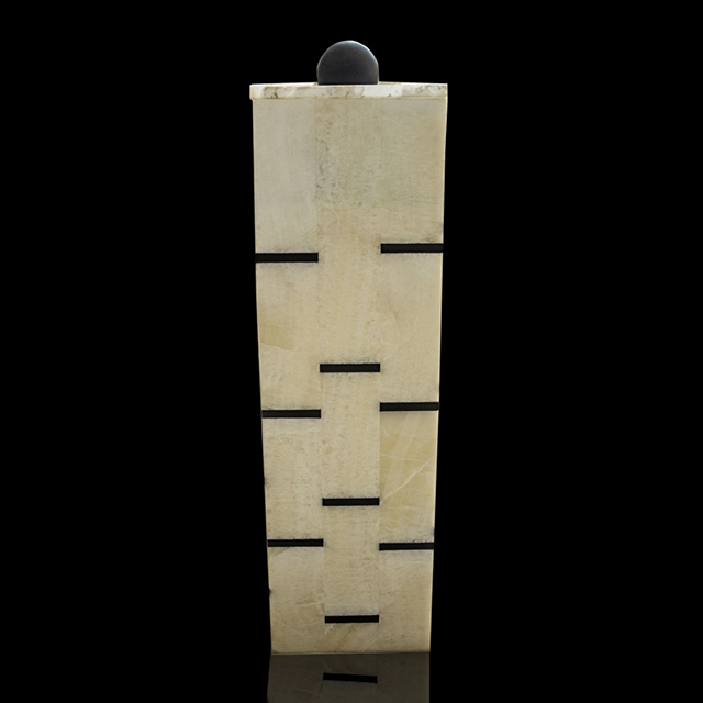 Designed as a tall, sculptural pedestal, water gently cascades along the surface, enhancing the stone’s color variations and adding a serene, spa-like ambiance. The striking geometric form, paired with the soft radiance of backlit onyx, makes this water feature an irresistible focal point for luxury interiors.