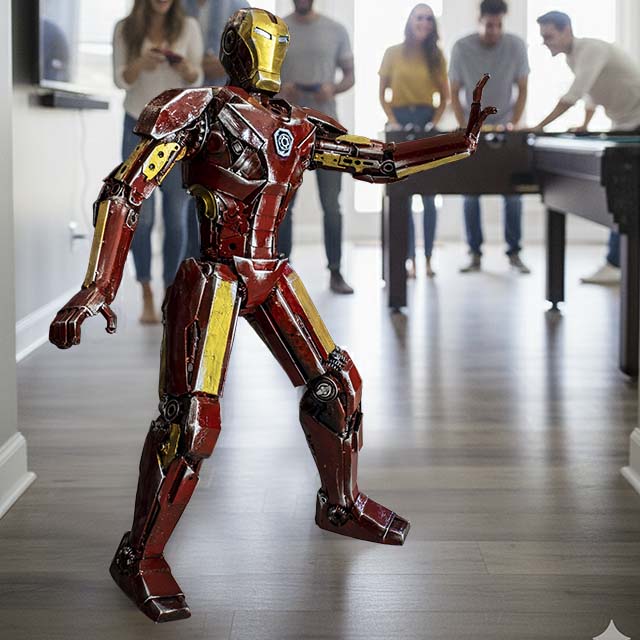 Make a bold statement with this Ironman-inspired metal art sculpture, a striking fusion of industrial craftsmanship and contemporary design. Crafted from metal with intricate detailing, this powerful figure captures the spirit of innovation, strength, and modern engineering.