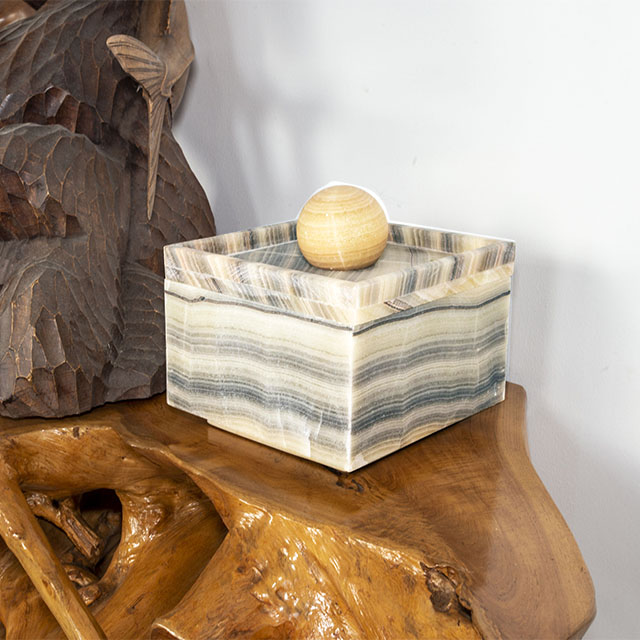 Carved from 100% natural onyx, showcasing unique banding and color variations