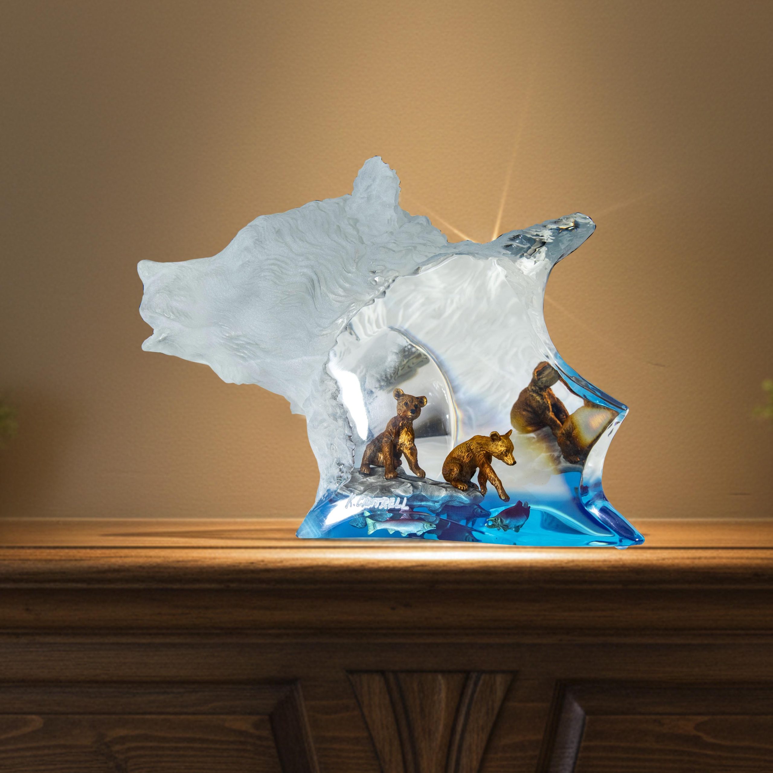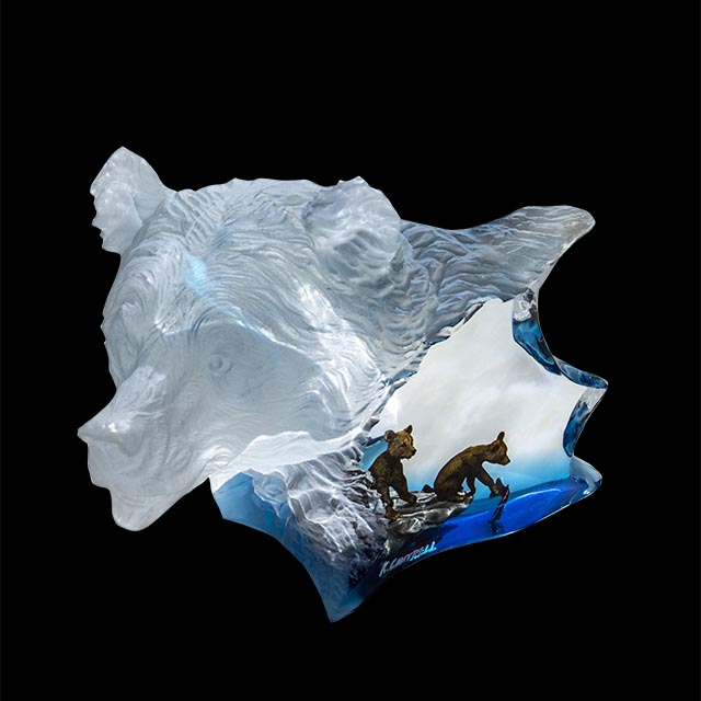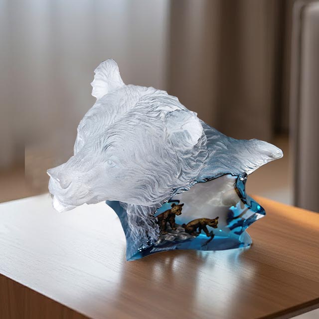 Crafted using a harmonious blend of textures and materials, this statement piece reflects both contemporary artistry and emotional depth. The translucent base adds a sense of fluidity and movement, while the sculpted details bring warmth and character, making it a striking focal point for any living space.