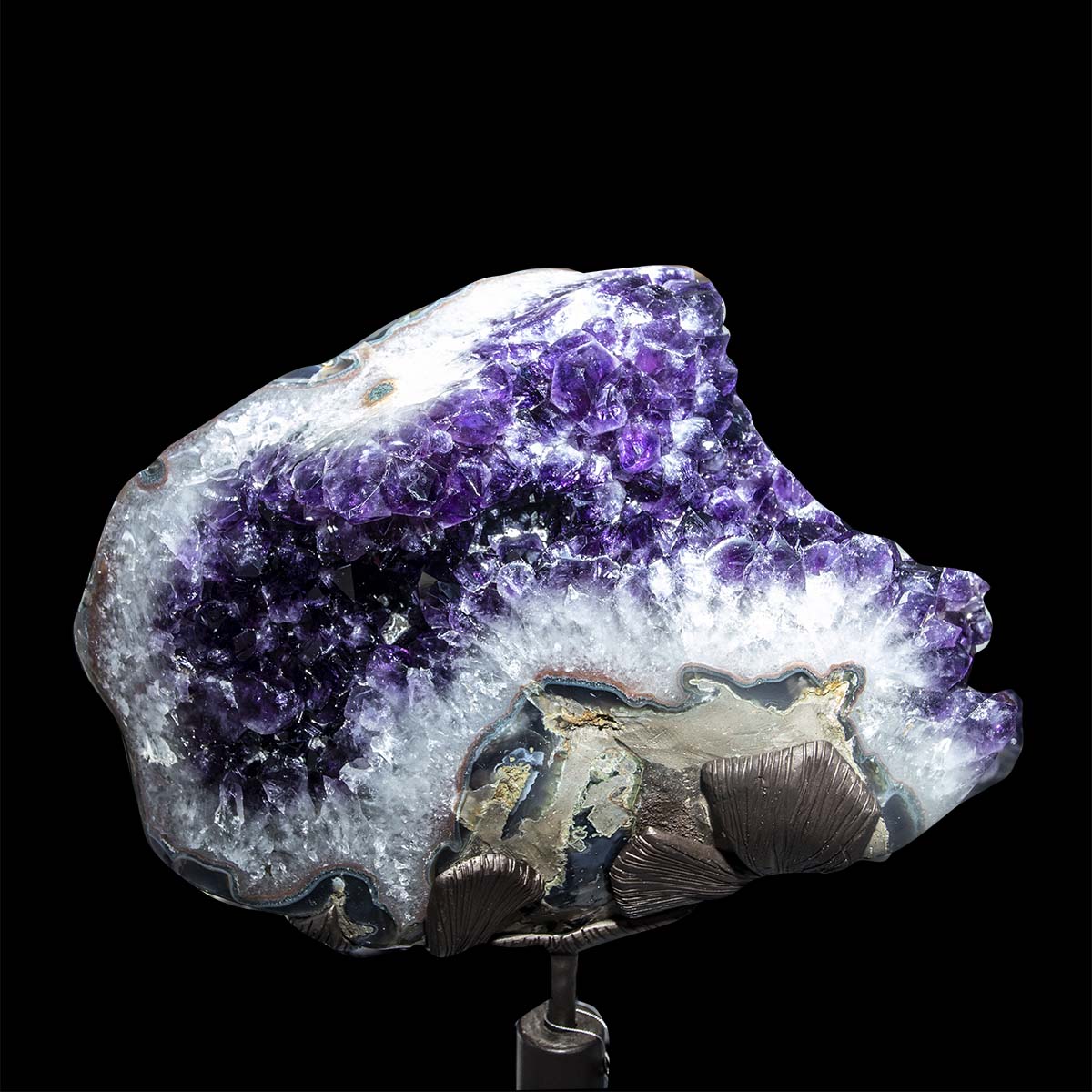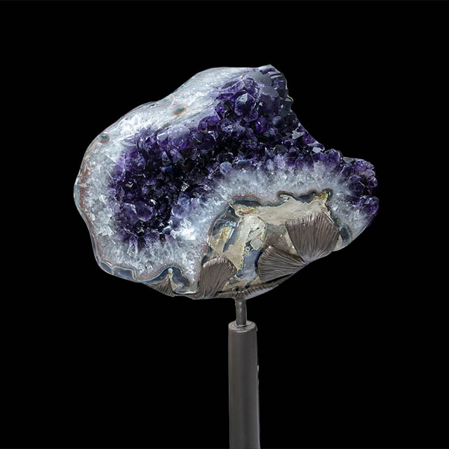 Natural Amethyst Geode w/ Flowers Stalactite Formation on Swivel Stand (360 degrees rotation)