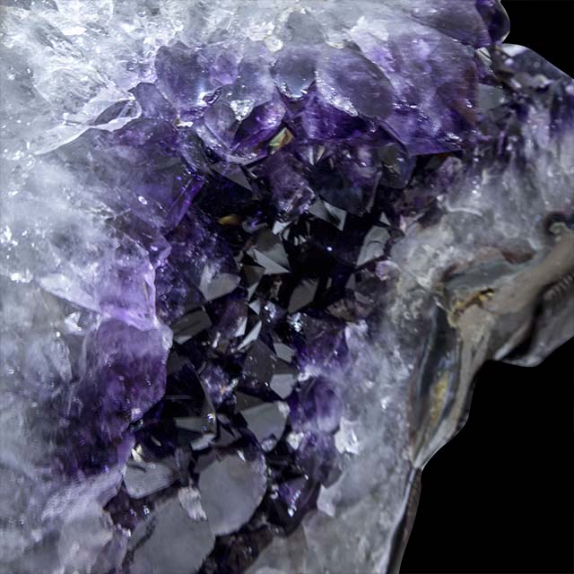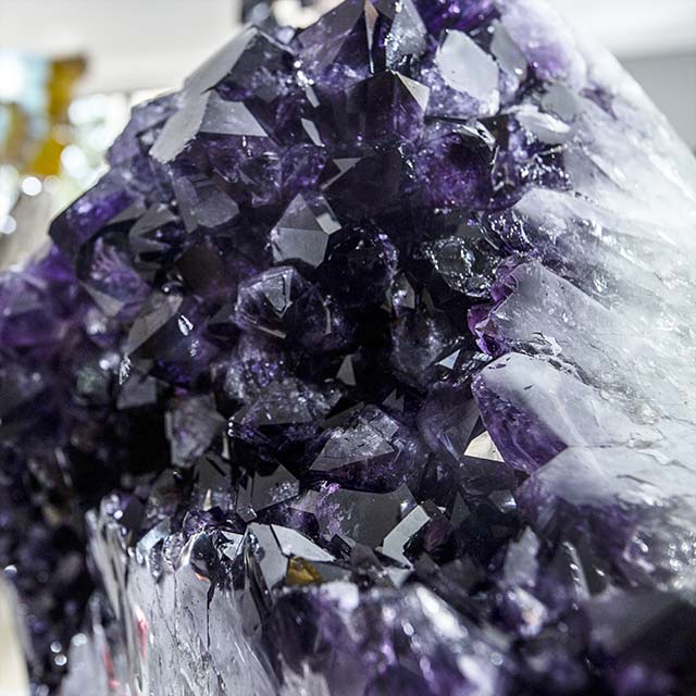 An Amethyst geode is a breathtaking geological wonder featuring a hollow rock cavity lined with sparkling and vibrant purple Amethyst crystals. These geodes often take on spherical or oval shapes, and their interiors reveal an intricate array of Amethyst crystals in various shades of purple, from pale lilac to deep violet. Natural Amethyst geodes are highly prized for their stunning natural beauty and the spiritual significance attached to Amethyst, which is believed to promote inner peace, clarity, and protection. These captivating formations serve as both decorative and metaphysical pieces, infusing spaces with their enchanting and serene presence.