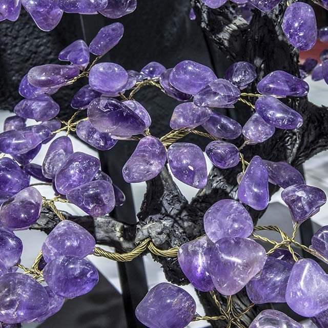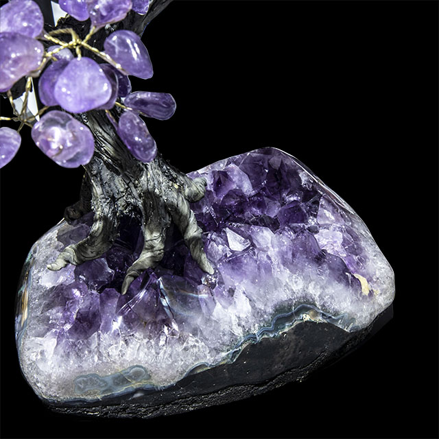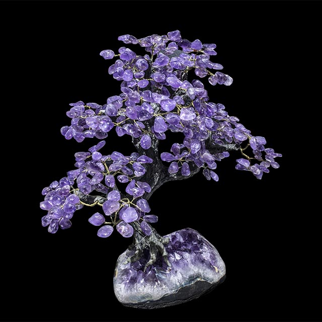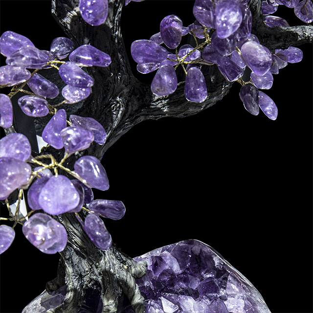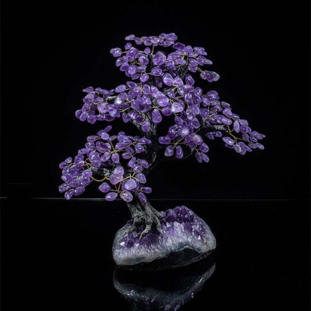 Brings you Handmade Amethyst Gemstone trees with a crystal cluster base, resin trunk, wired branches and tumbled Amethyst gemstones.