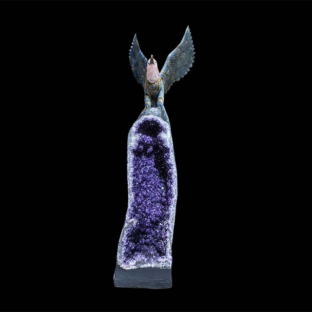 Natural Blue Apatite Eagle Sculpture on Amethyst Geode Cathedral / Gemstone Bird on Extra-large Amethyst Geode, 196 kg