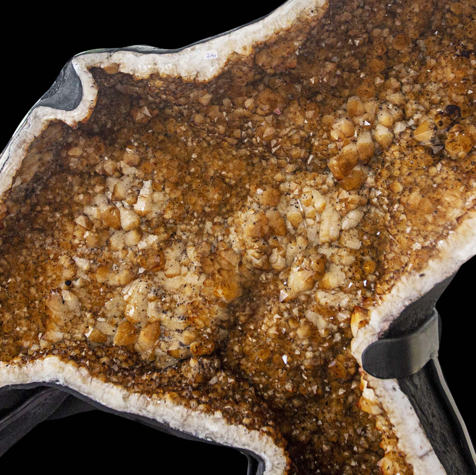Citrine is said to promote optimism and positivity, which is not unexpected given its cheerful color. It is frequently utilized to help manifest financial prosperity and possibilities. This gorgeous Citrine geode has a vibrant orange and yellow hue that is lined with extra-large lustrous, transparent to translucent, and has highly reflective terminated faces. Perfect addition to compliment any space.