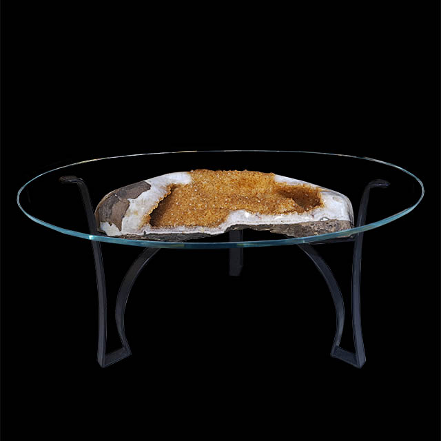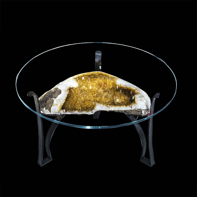 Natural Citrine Geode Coffee Table w/ glass round top