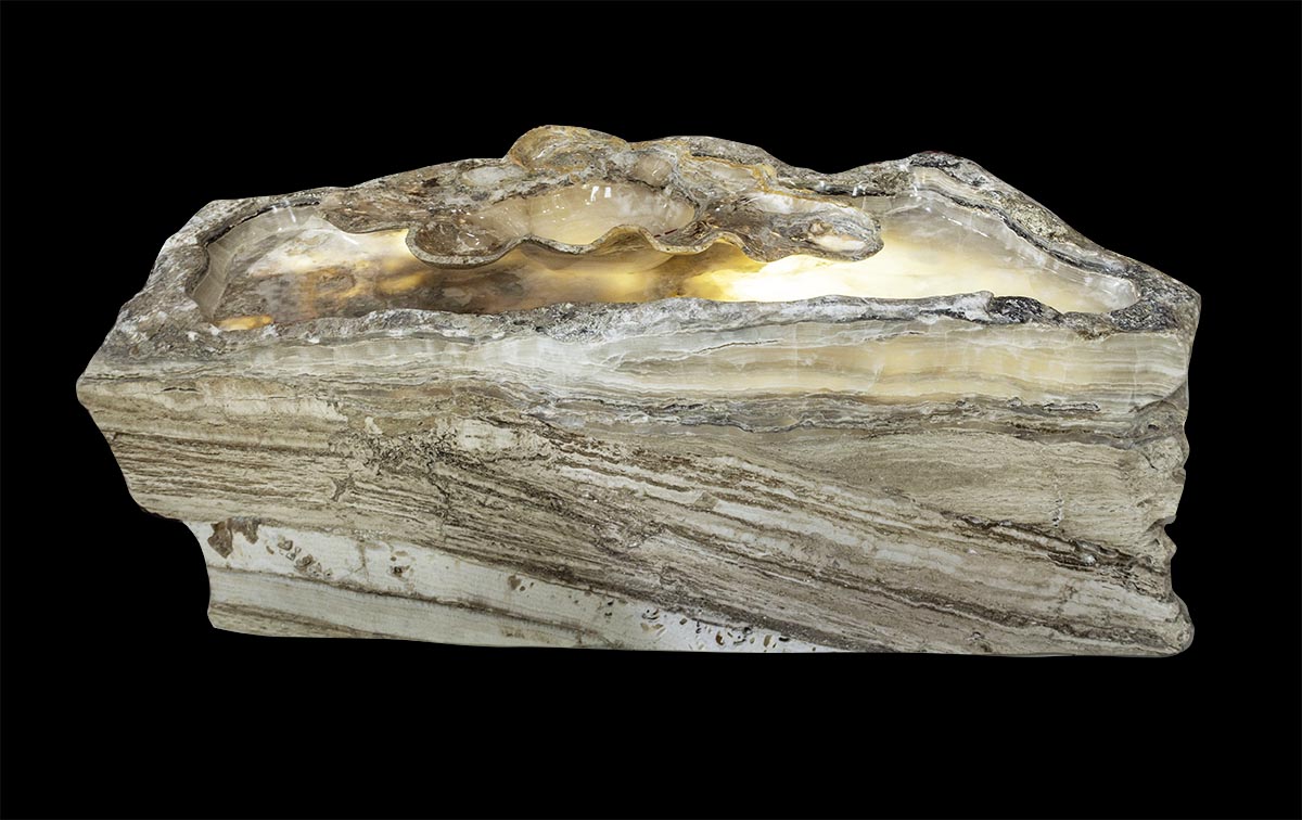 This mesmerizing and luxurious coffee table is hand-crafted from natural translucent Onyx and is illuminated from within. The Onyx stone showcases the intricate natural patterns, and emits a warm and enchanting glow, creating an ethereal effect that highlights the stone’s beauty. This table serves as both a functional and artistic element, making it a captivating and elegant addition to various settings. This table is perfect for creating a unique and inviting ambiance, whether in a living room, lounge, or as a decorative focal point in any space.