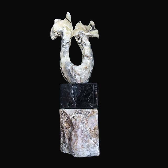Discover the natural elegance of NATURAL ONYX with our exquisite “PEACE AND HARMONY SCULPTURE”, a hand-carved masterpiece that blends the beauty of precious stones with unique design.