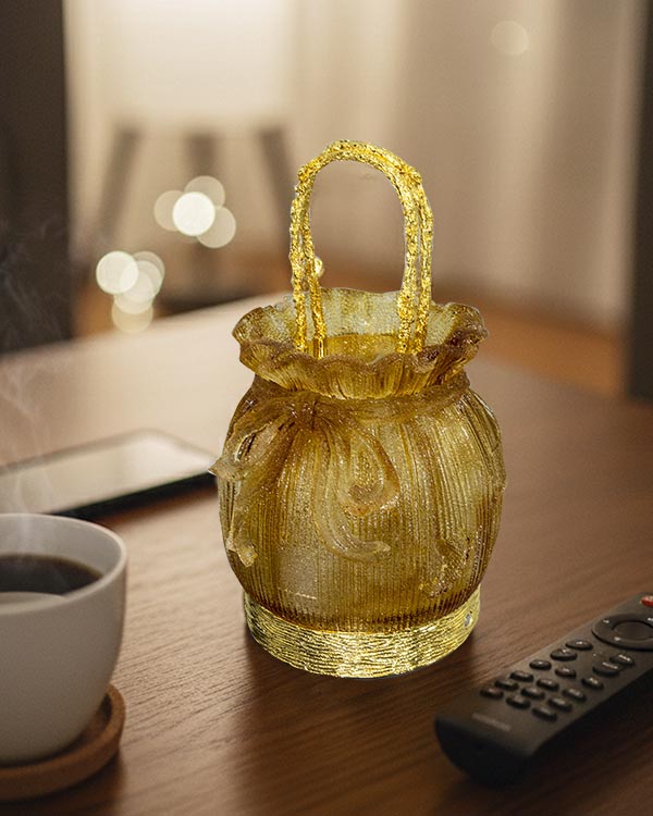 Ideal for upscale interiors, special events, boutiques, and collectors of artistic functional décor, this glow bag is designed to captivate in any setting.