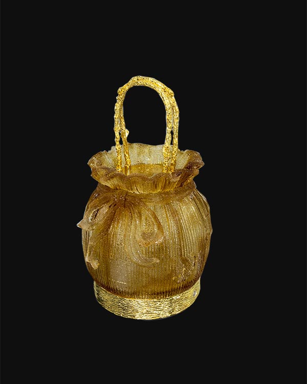 Equipped with a built-in USB port, the Bloom Glass Glow Bag brings convenience and elegance together—perfect for powering your glow or charging on the go. Its gold-accented handle and base add a luxurious touch, making it both a statement décor piece and a standout fashion accessory.