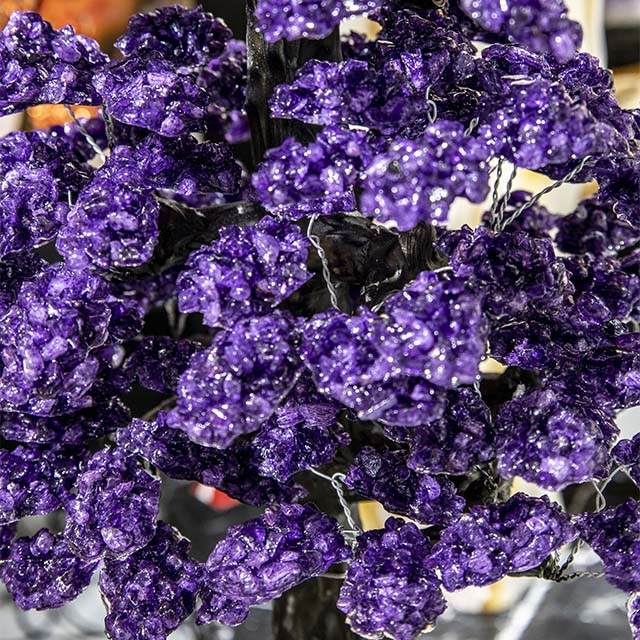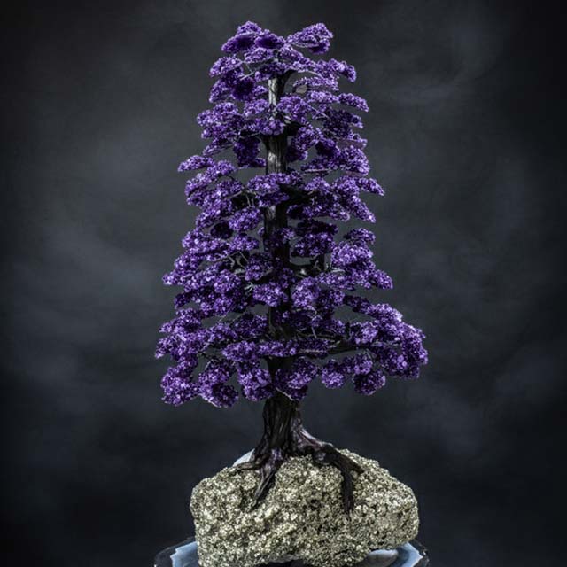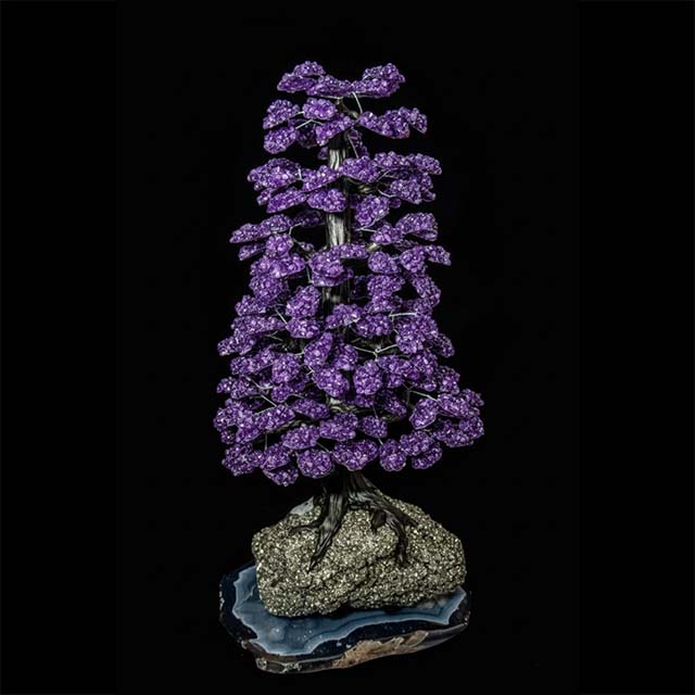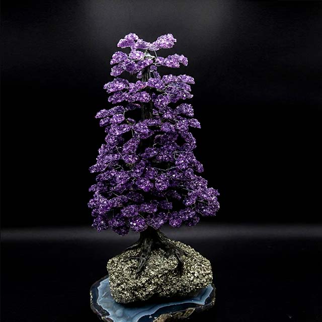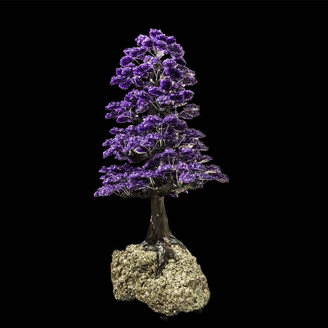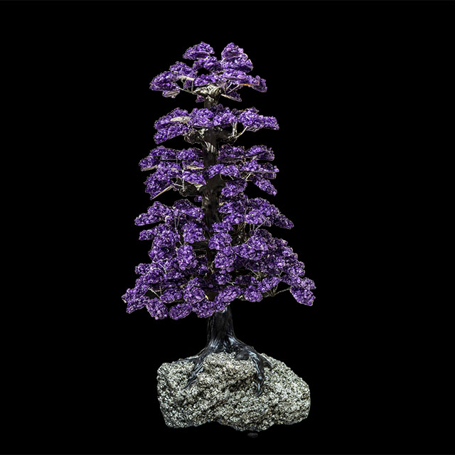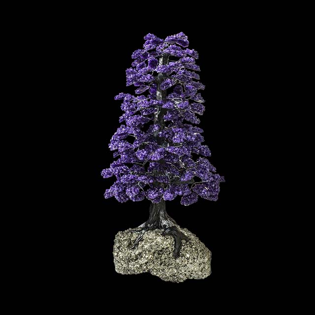 Artistic & Collector-Focused: This exquisite gemstone sculpture showcases a beautifully detailed Amethyst Tree, meticulously shaped with hand-wired branches and vibrant purple crystals. The tree stands proudly on a genuine Pyrite mineral base, offering a sparkling metallic texture that enhances the overall visual depth. Ideal for collectors, interior stylists, or anyone who appreciates unique natural art.