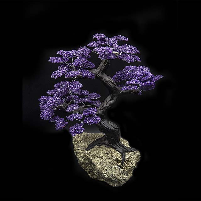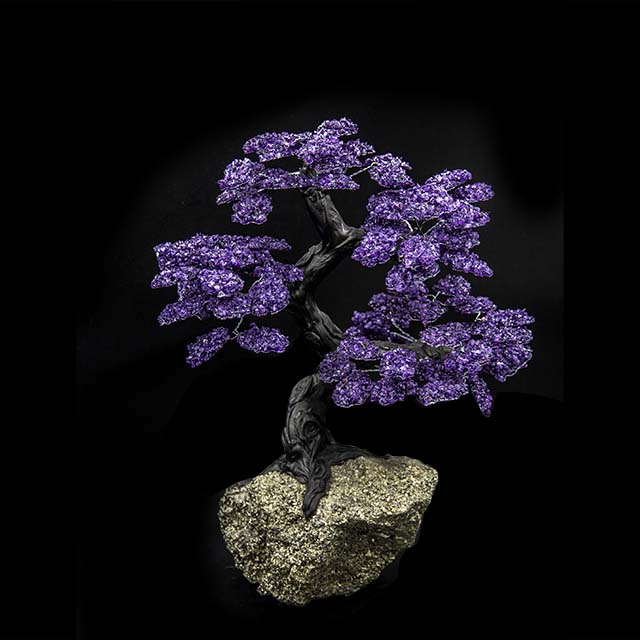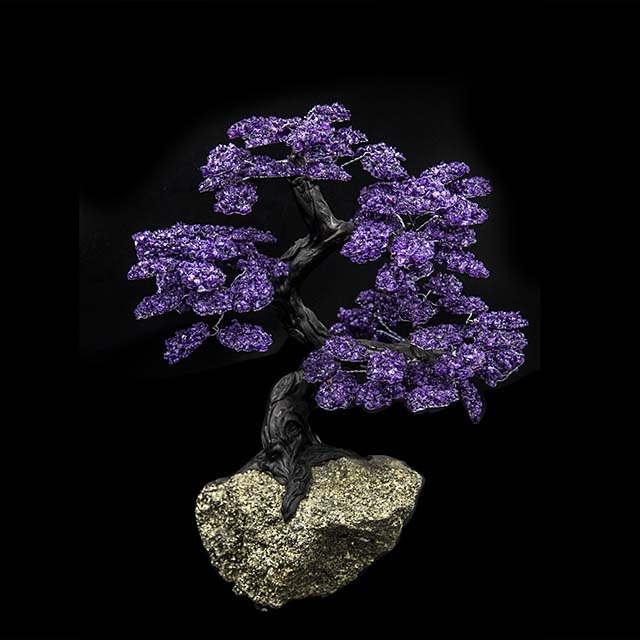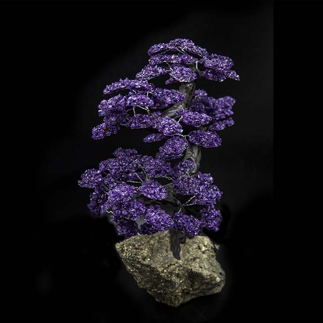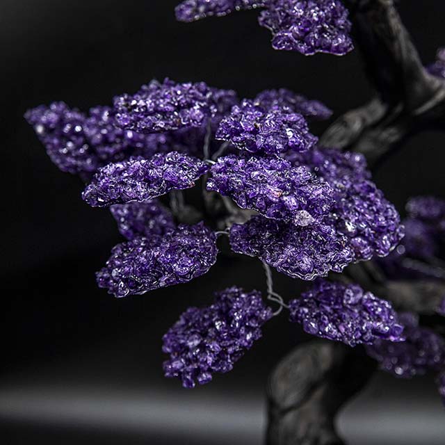 A unique creation, displaying the mesmerizing purple hues characteristic of amethyst. The variations in size, shape, and color add to the natural beauty, making each piece a one-of-a-kind work of art.
