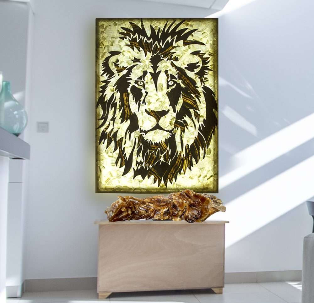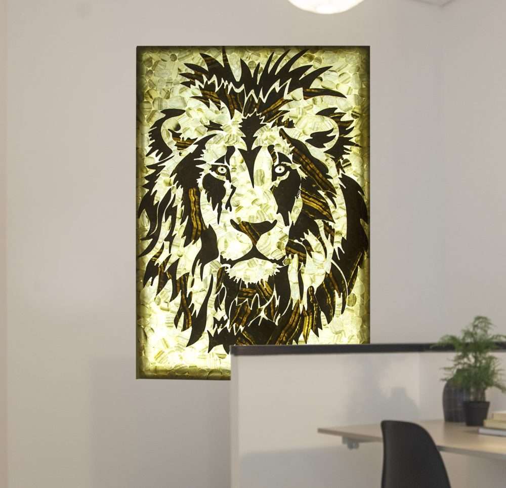 Onyx Lion Lampshade (Illuminated), Onyx Lion Wall Art Display