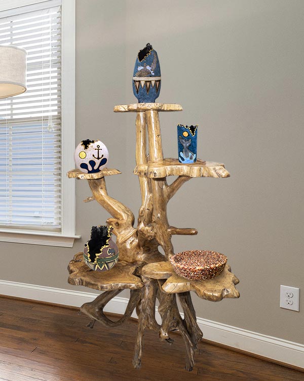 Each tier is uniquely formed, making every sculpture a one-of-a-kind statement. The flowing roots and branching silhouette evoke growth, balance, and timeless artistryāperfect as a standalone art installation or a functional display for crystals, objects, or curated dĆ©cor.