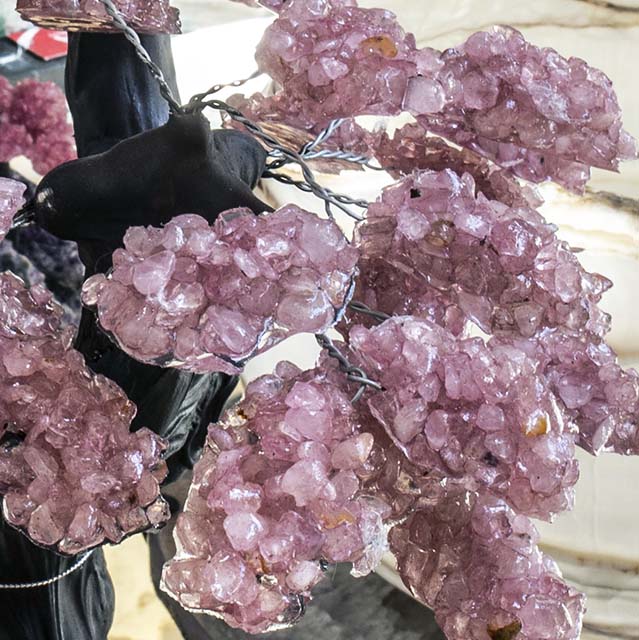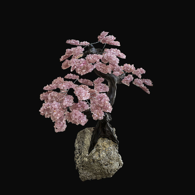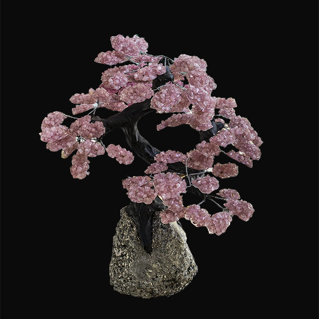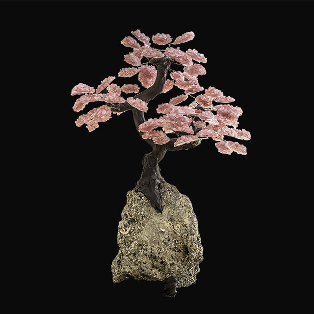 Elevate your interior with the timeless elegance of our Rose Quartz Tree on Pyrite Base, a captivating fusion of natural beauty and symbolic energy. Handcrafted with delicate rose quartz crystal leaves, this sculptural tree represents love, harmony, and emotional balance, making it a meaningful addition to any refined space.