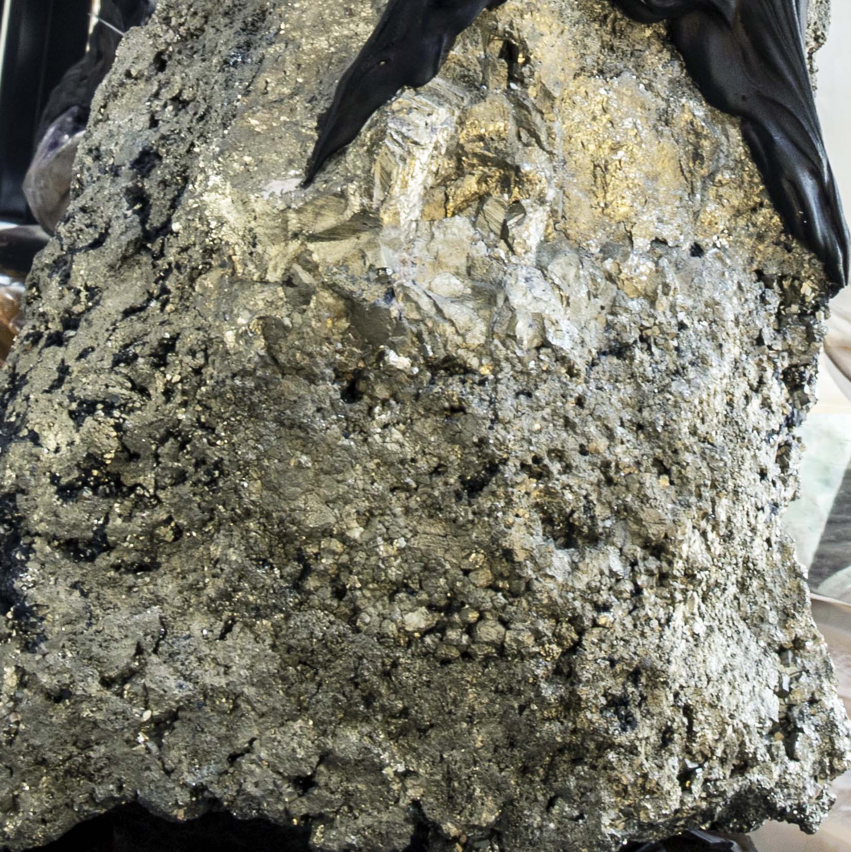 Anchored on a natural pyrite gemstone base, known as the stone of prosperity, confidence, and abundance, this piece beautifully balances softness and strength. The warm golden tones of pyrite contrast gracefully with the gentle blush hues of rose quartz, creating a visually striking décor accent that radiates luxury and positive energy.