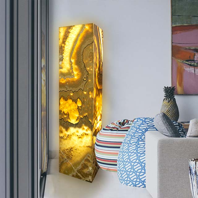 Sunlight Floor Lamp made by Natural Onyx, the translucent stone, it creates a warm, atmospheric glow that gently enhances any room.