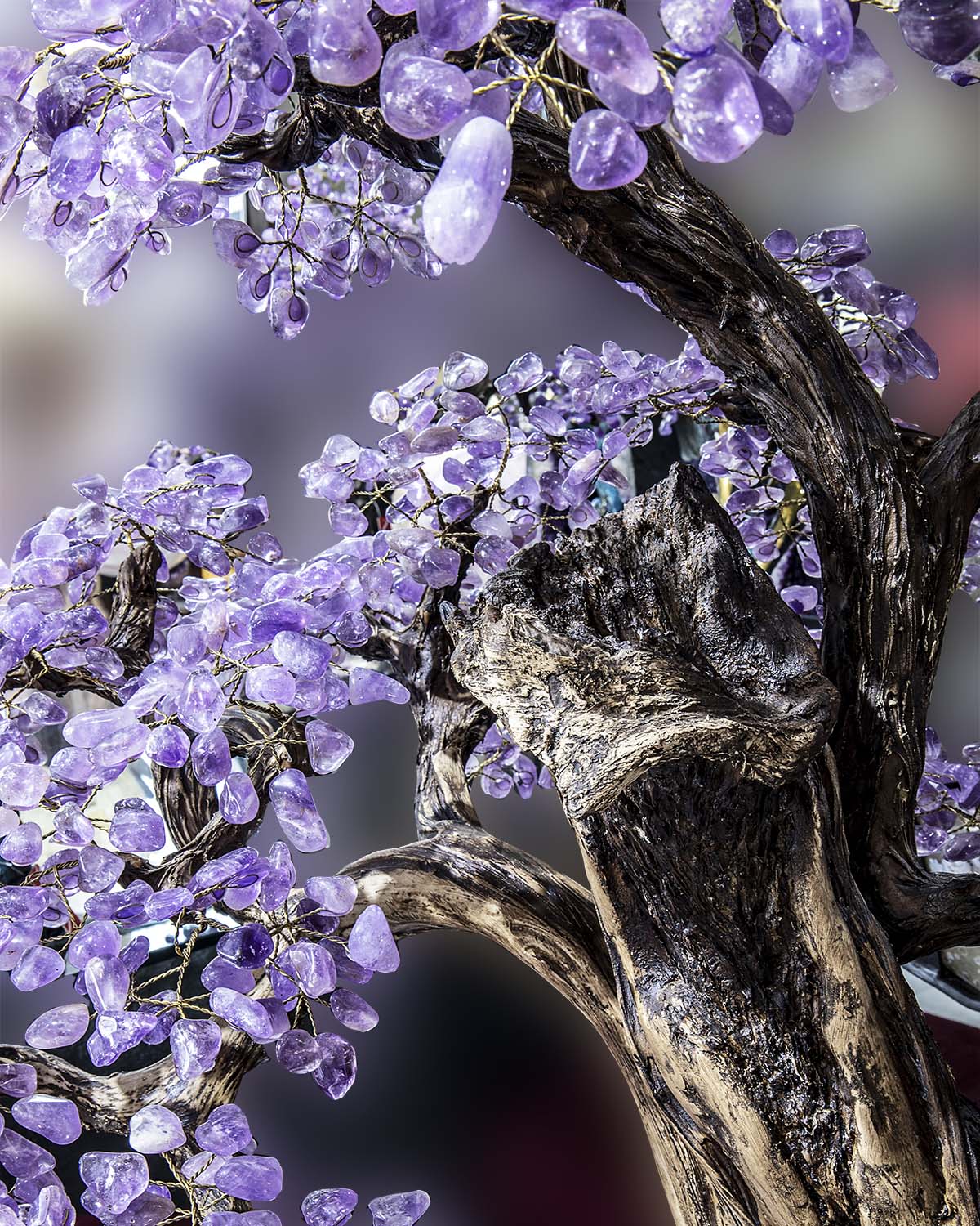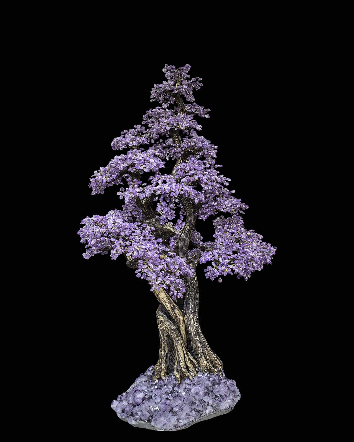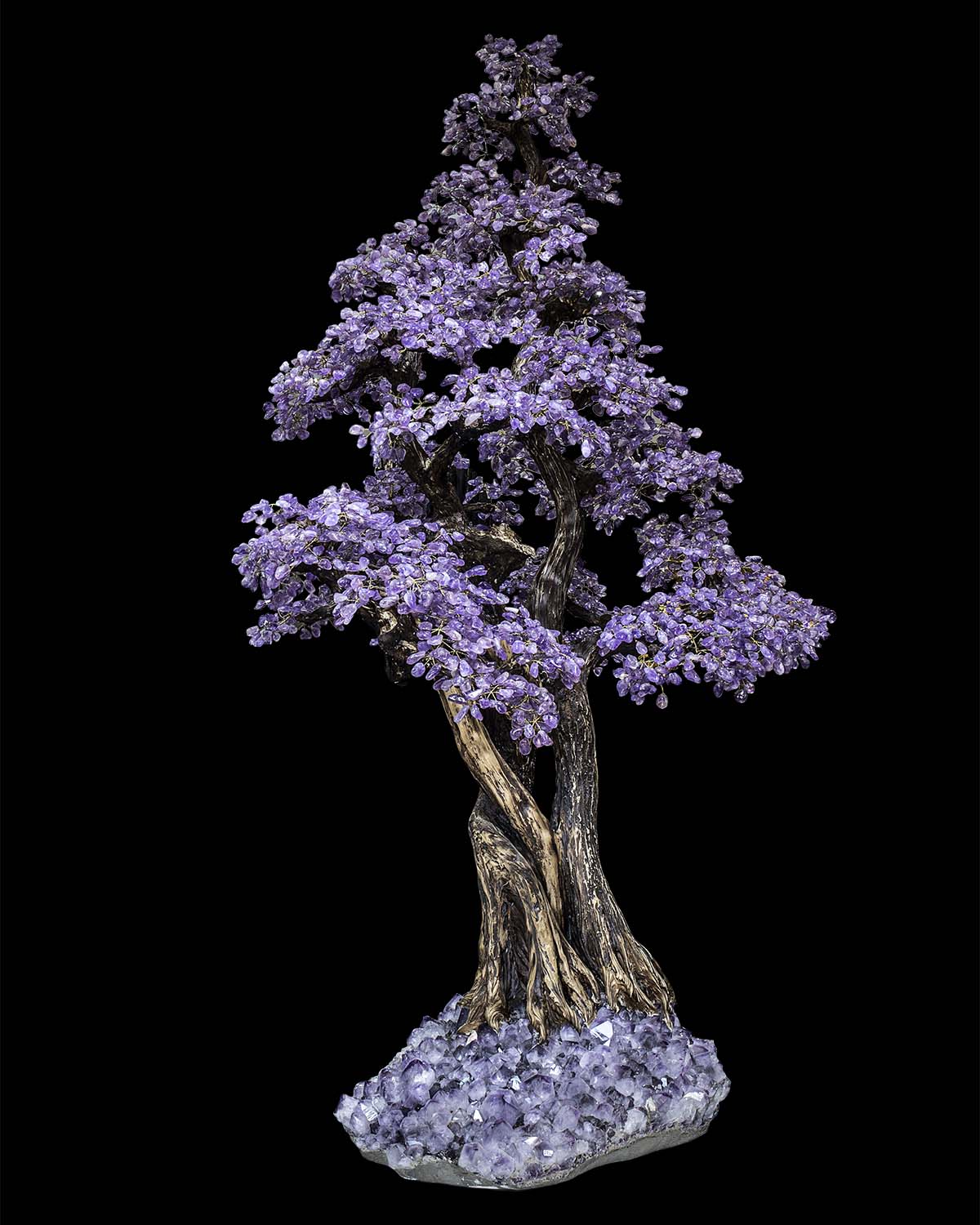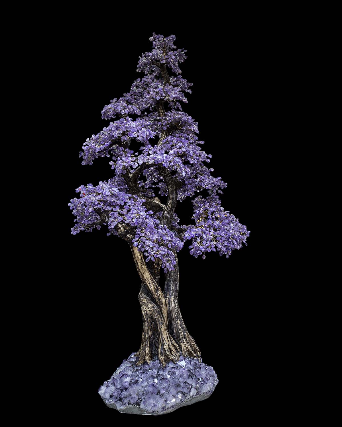 A commanding statement of nature transformed into art, The Empress of Amethyst Tree™ rises in graceful form with cascading violet crystal foliage and an organically sculpted trunk rooted in raw amethyst stone. Symbolizing tranquility, wisdom, and abundance, this monumental crystal sculpture merges botanical elegance with mineral grandeur—crafted to become the crown jewel of any refined interior.