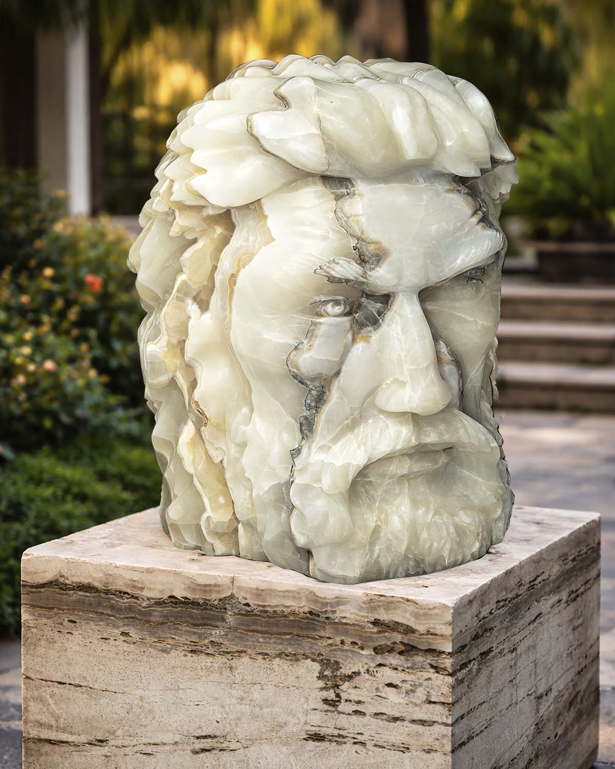 Crafted from premium natural onyx, this sculpture possesses a unique translucency that allows light to softly penetrate its surface.