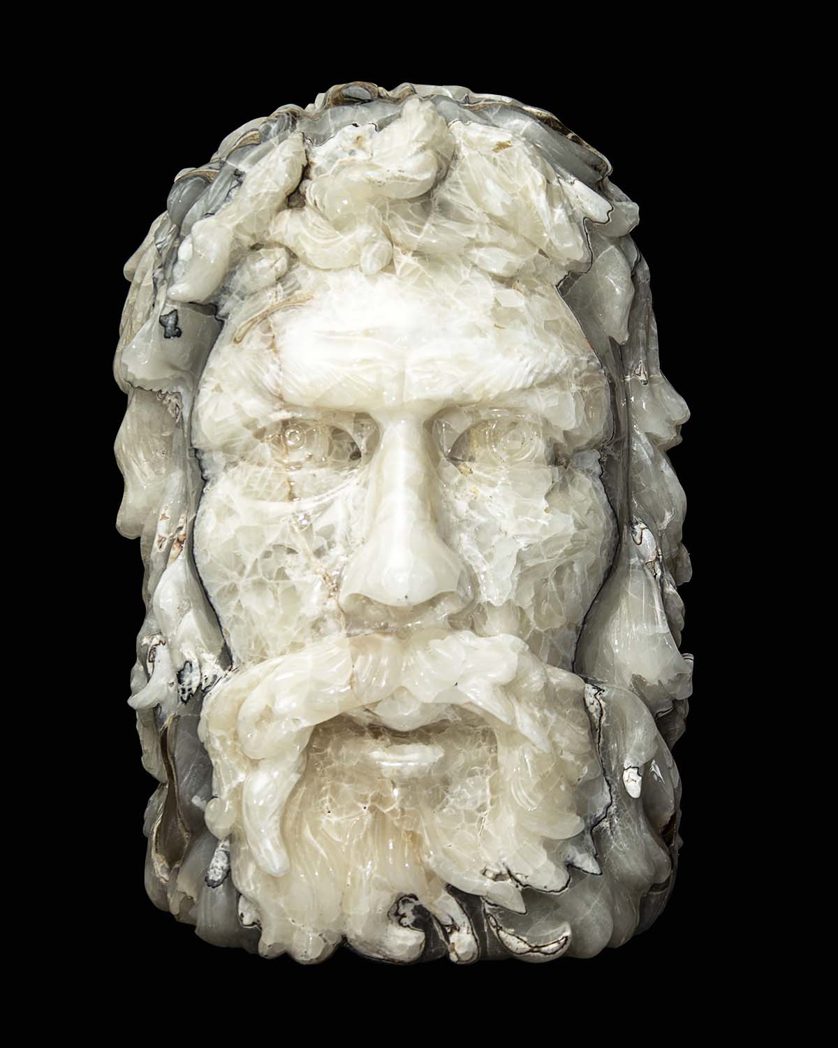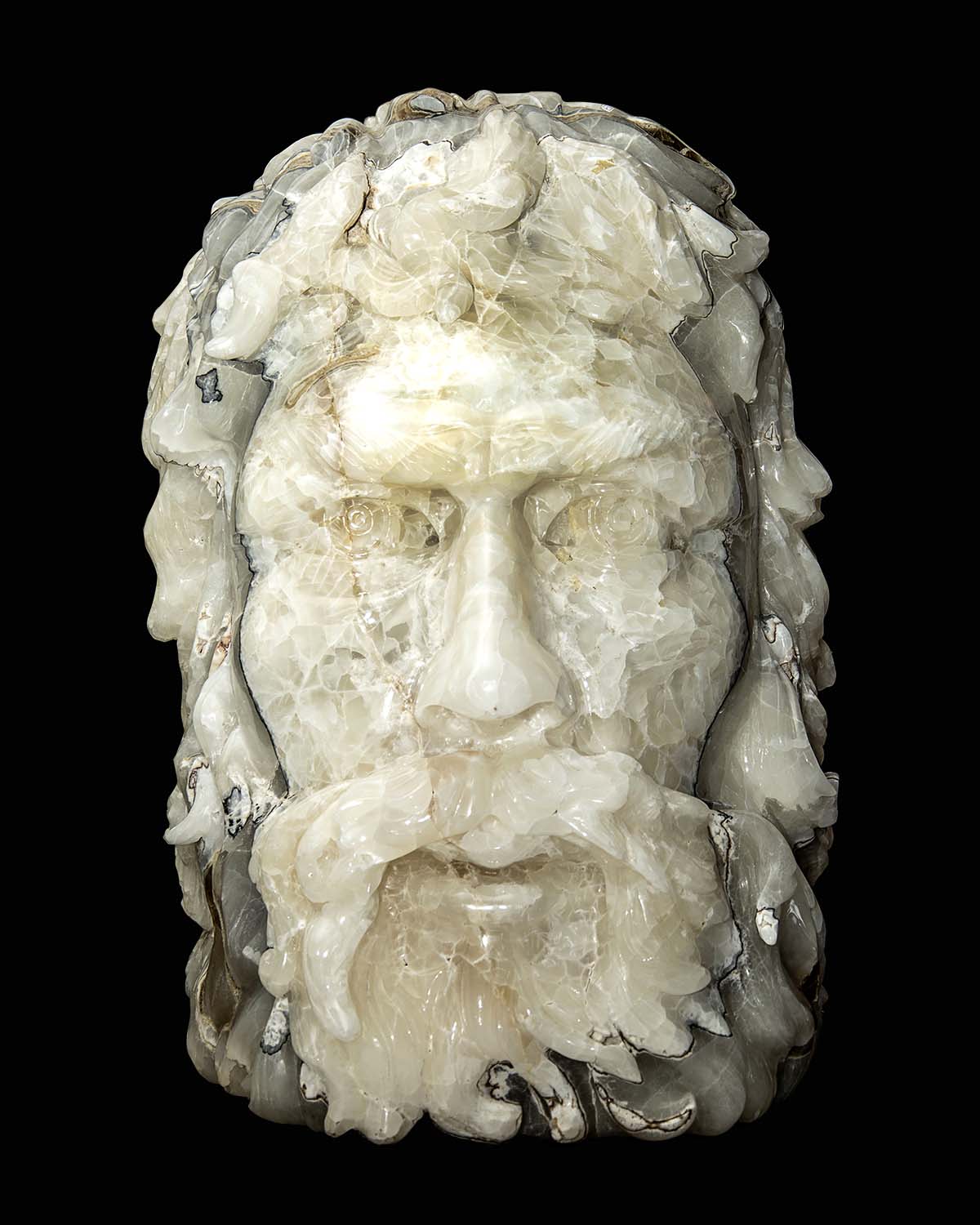 Every contour of the sculpture reveals a story—two faces emerging from a single mass of onyx, symbolizing balance between beginnings and endings.