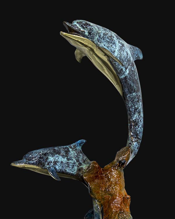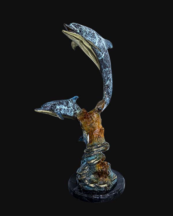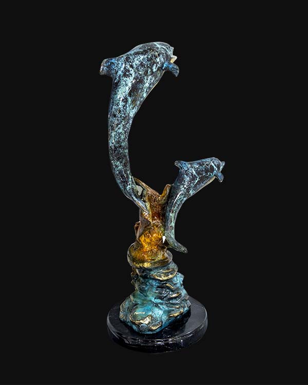 Twin Ascension™ is a contemporary bronze sculpture that celebrates unity, movement, and shared ascent. Two dolphins rise in an elegant spiral, frozen mid-leap, symbolizing harmony, protection, and collective strength.