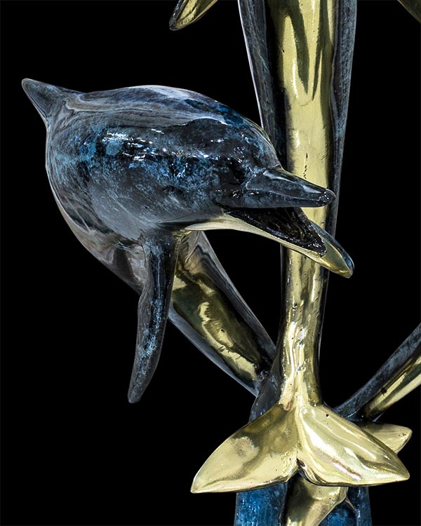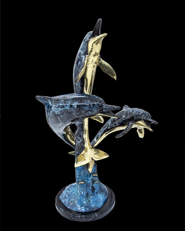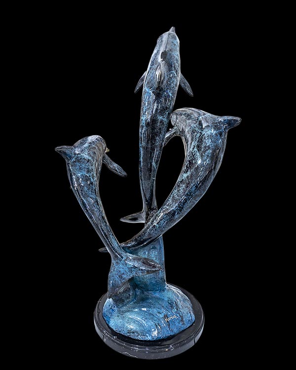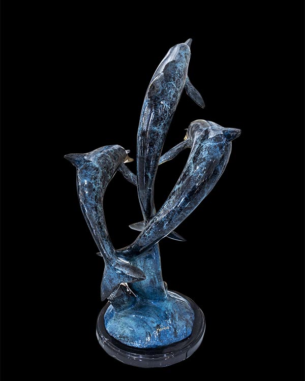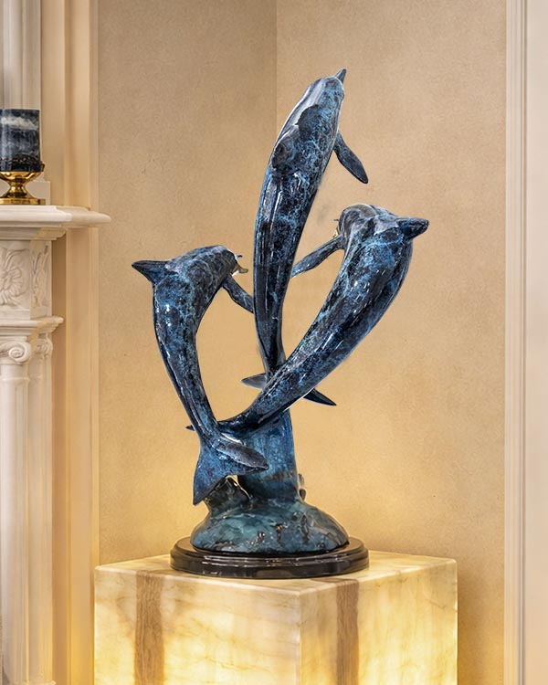 Each dolphin is sculpted in fluid motion, creating a sense of upward energy and balance—an artistic tribute to marine beauty and timeless craftsmanship. Designed as a statement centerpiece, this sculpture brings a refined coastal elegance to luxury interiors, foyers, and curated art collections.